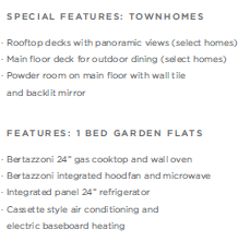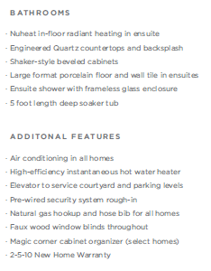 Yukon Residences的三或四睡房联排别墅,为业主配备了嵌入式主流欧洲家电,厨房更有陶瓷防溅板。入户硬木地板和天花线,让精致豪华感倍增。 整体物业也配备了中央供暖和空调,另整个楼盘品质上升一个级别。