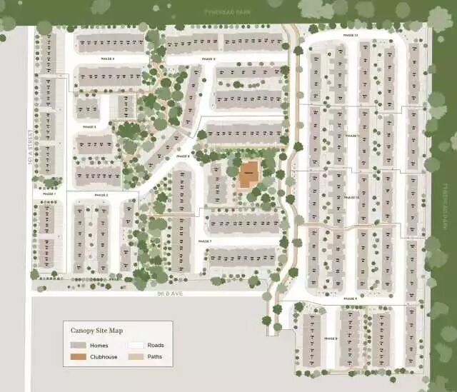 Canopy作为大型联排项目,自成独立小区,由302套2、3及4睡房组成,为各类型家庭精心营造出理想的居住格局。Tynehead公园有如前庭大花园,绵延出无尽的绿意。各家宽阔的后院,在大温同类项目中出类拔萃,更不输独立屋。