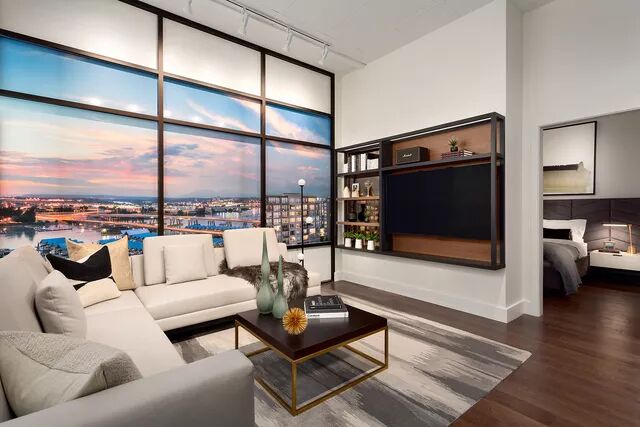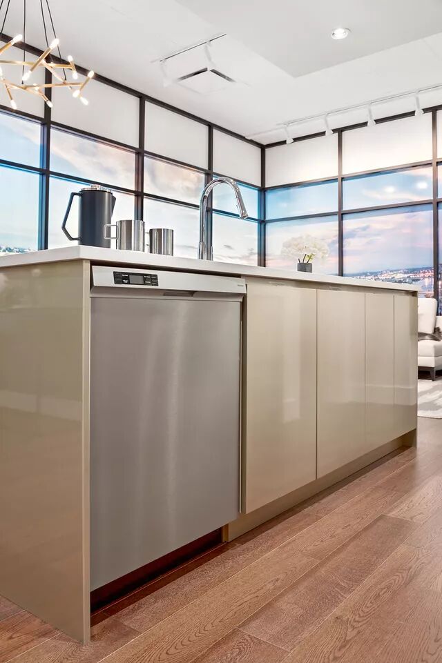 The Capstan设计现代摩登,提供Cool Grey和Calssic Walnut两种色调可供选择。9尺-10尺的挑高层高,套内铺设工程实木地板。厨房采用Fulgor和Blomberg家电,顶层单位采用Miele家电。