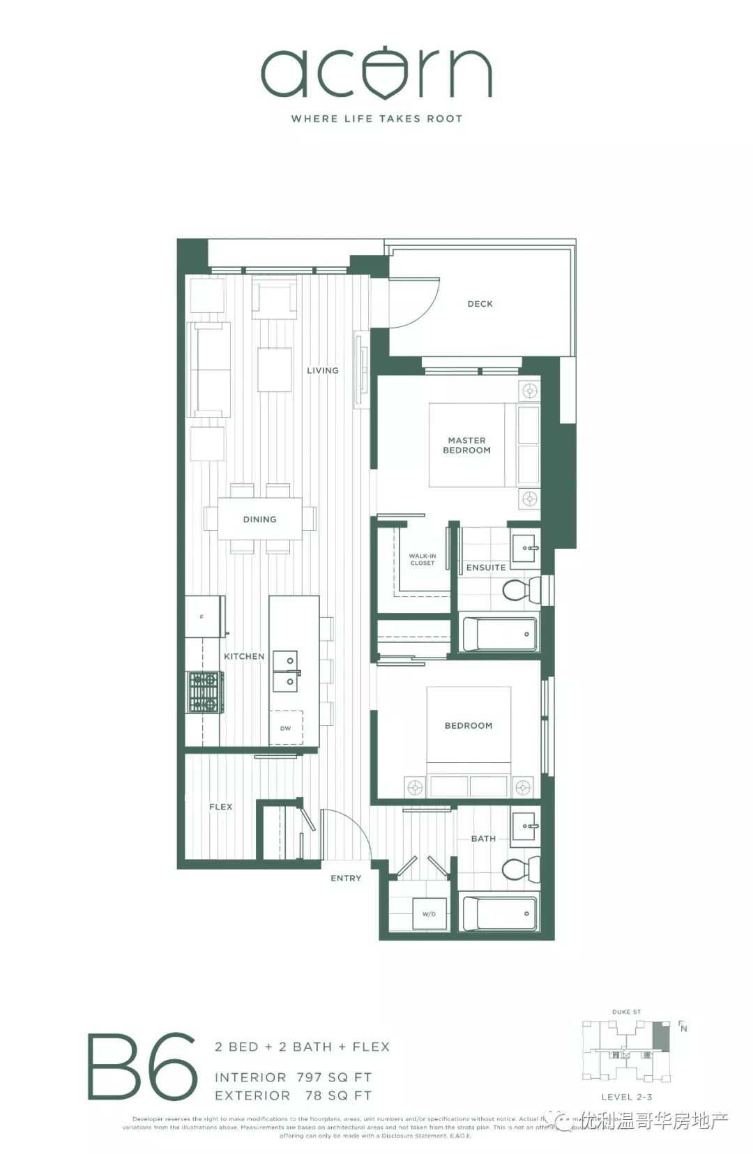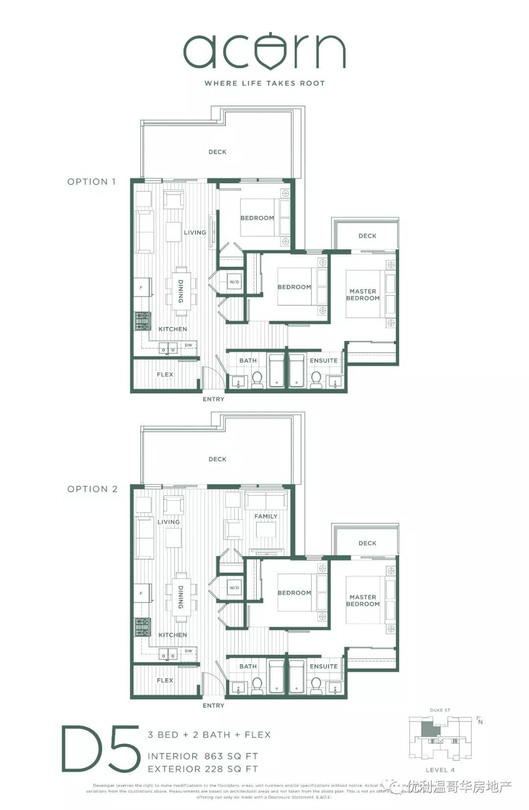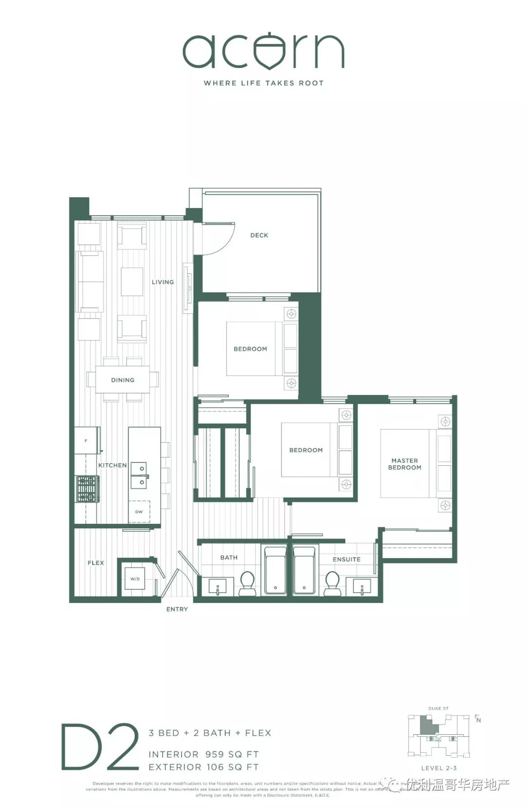 Acorn大多数户型为2-3卧室户型。每套户型配备大型阳台或是露台提供更多生活空间。顶楼户型能够远眺北岸雪山和温哥华天际线。