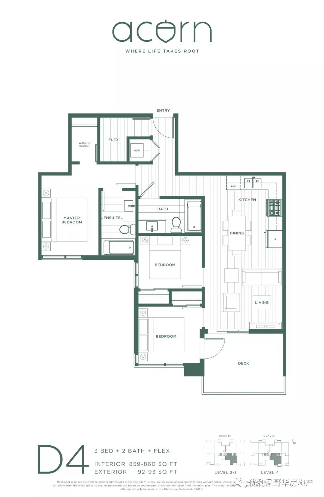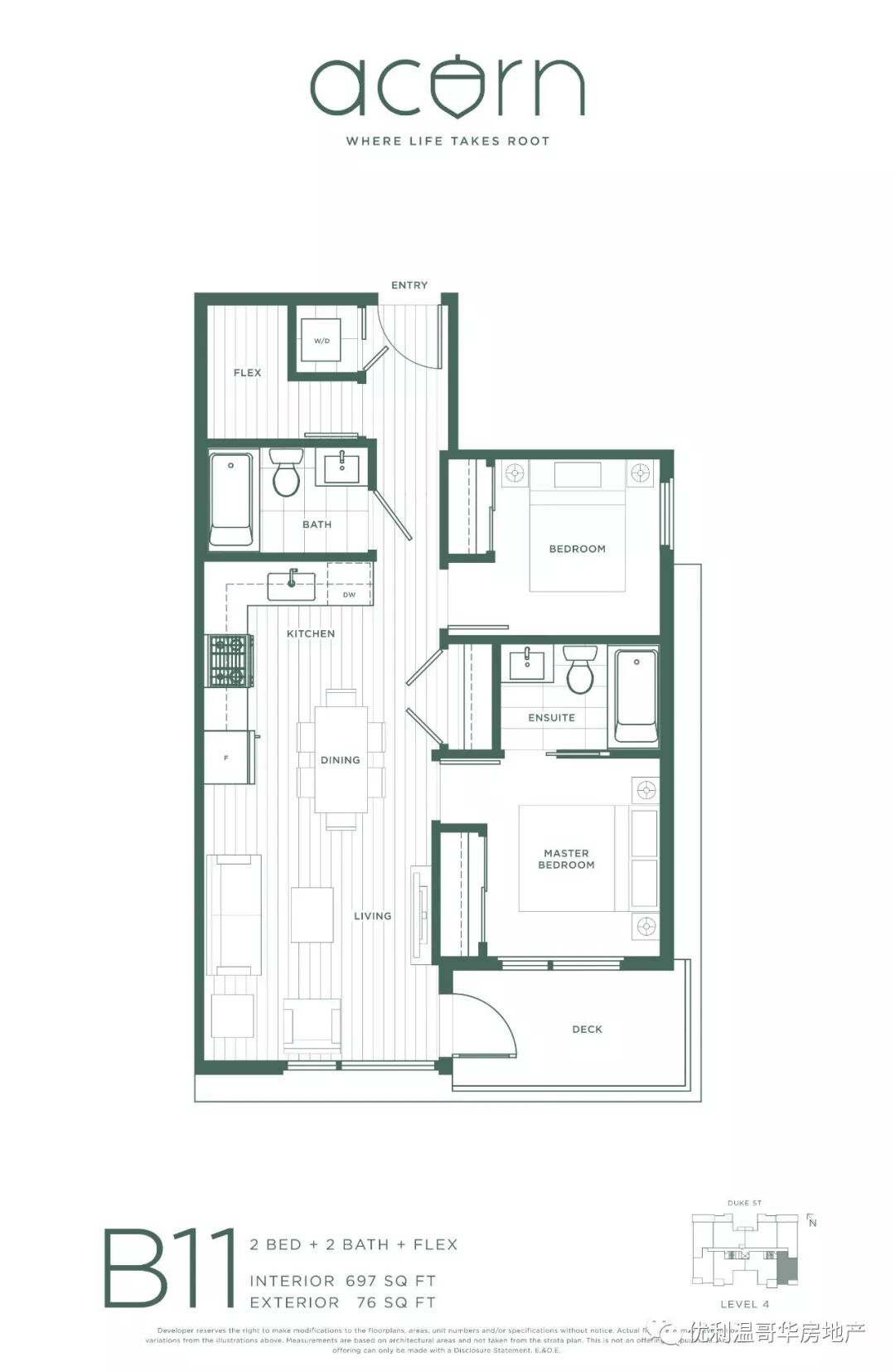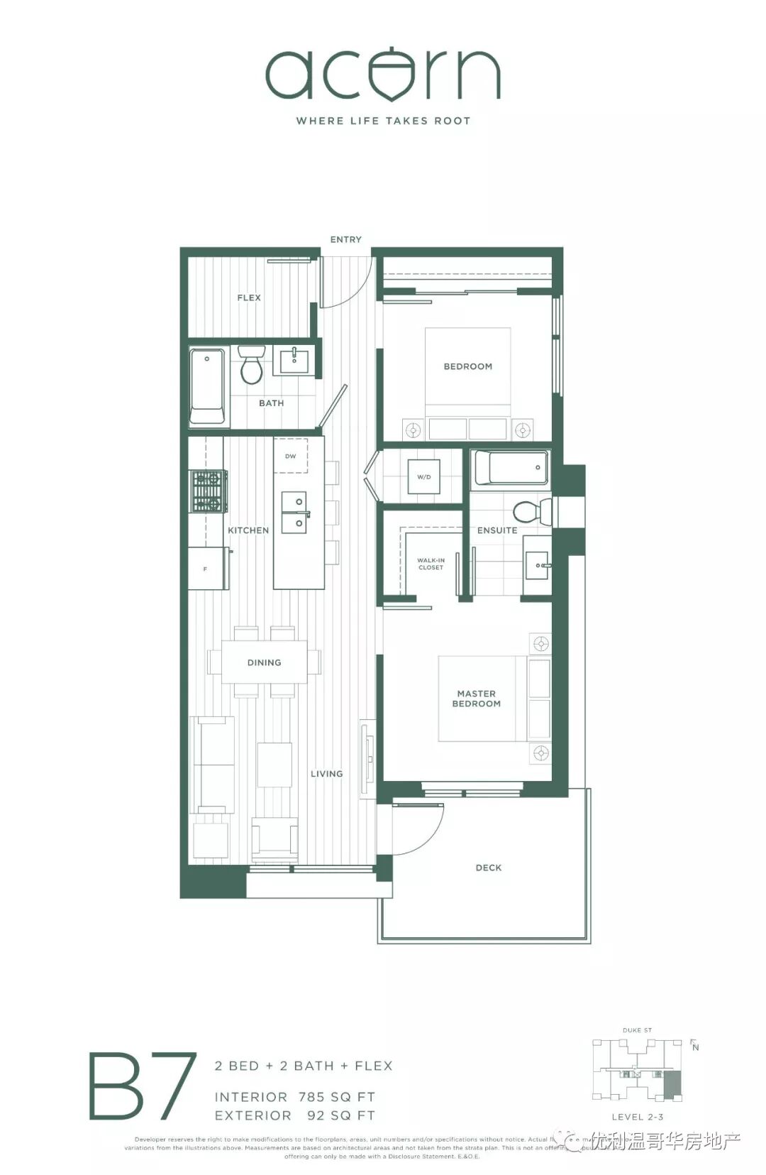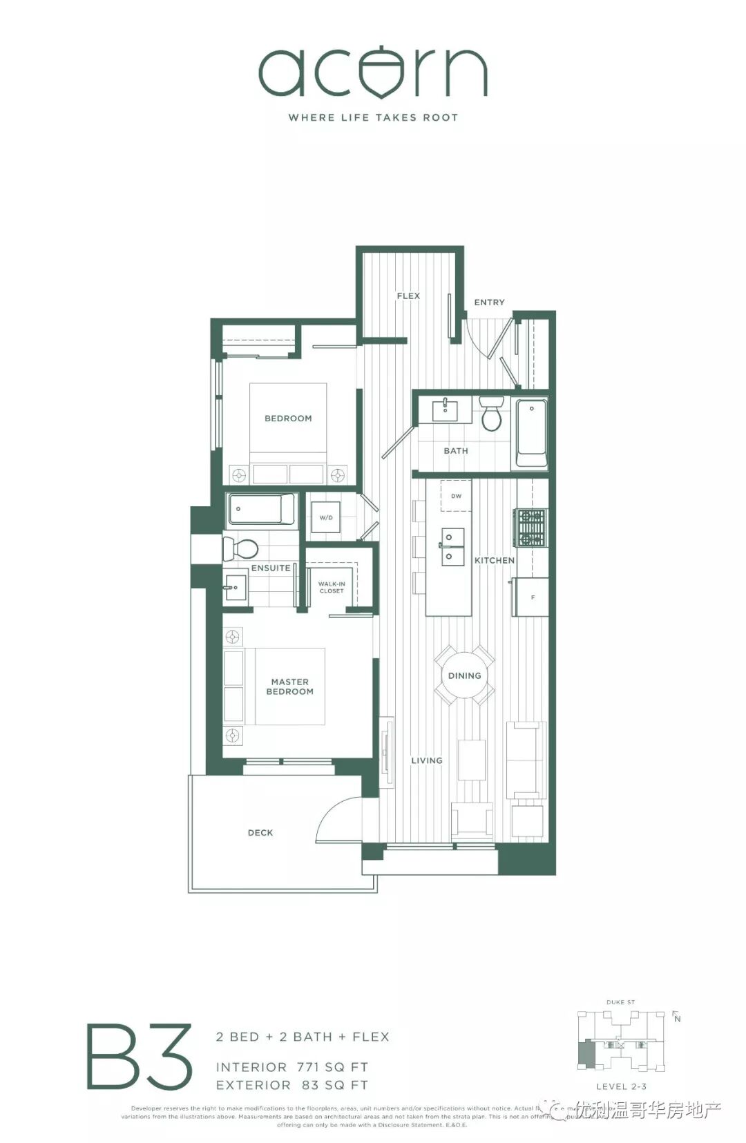 Acorn大多数户型为2-3卧室户型。每套户型配备大型阳台或是露台提供更多生活空间。顶楼户型能够远眺北岸雪山和温哥华天际线。