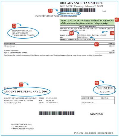 每年温哥华政府会向区域内屋主寄送两份地税单——预地税单(Advance Tax Notice)和主地税单(Main Tax Notice)。屋主会在不同时间收到这两份税单,并且均需要在规定日期前缴清税金。