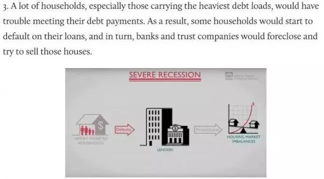 许多家庭特别是那些债务负担最重的家庭,将会让自己陷入无法偿还债务的麻烦之中。作为最终的结果,部分家庭将会开始出现债务违约问题。反过来,银行和信托公司将会取消这些家庭的房产赎回权,并尝试出售这些房屋。