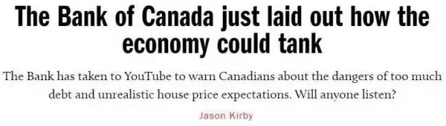 尽管央行在视频中表示,目前该国国内债务和过度膨胀的房价所带来的危险有可能会摧毁加拿大国内经济,但是仍然坚决不能让房价暴跌。