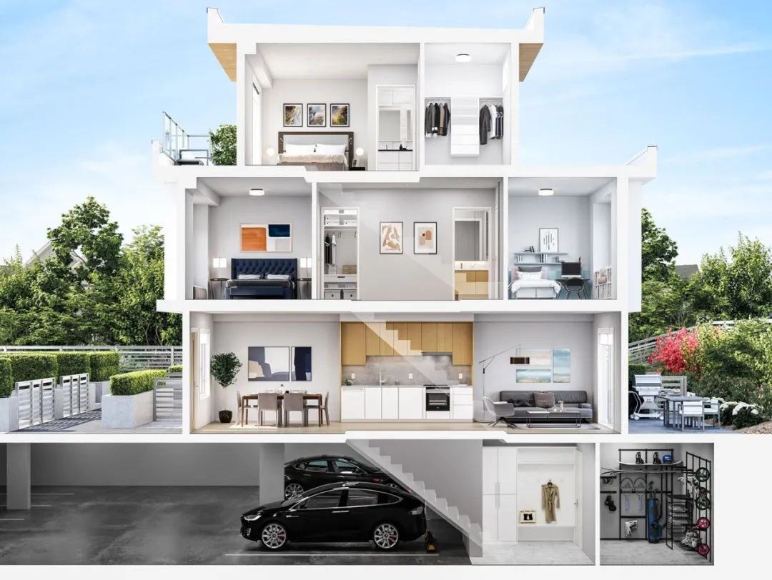Kai项目提供12套3卧室联排别墅,室内面积从1041-1432平方英尺不等,提供充足的宜居空间,安享西区优质生活。