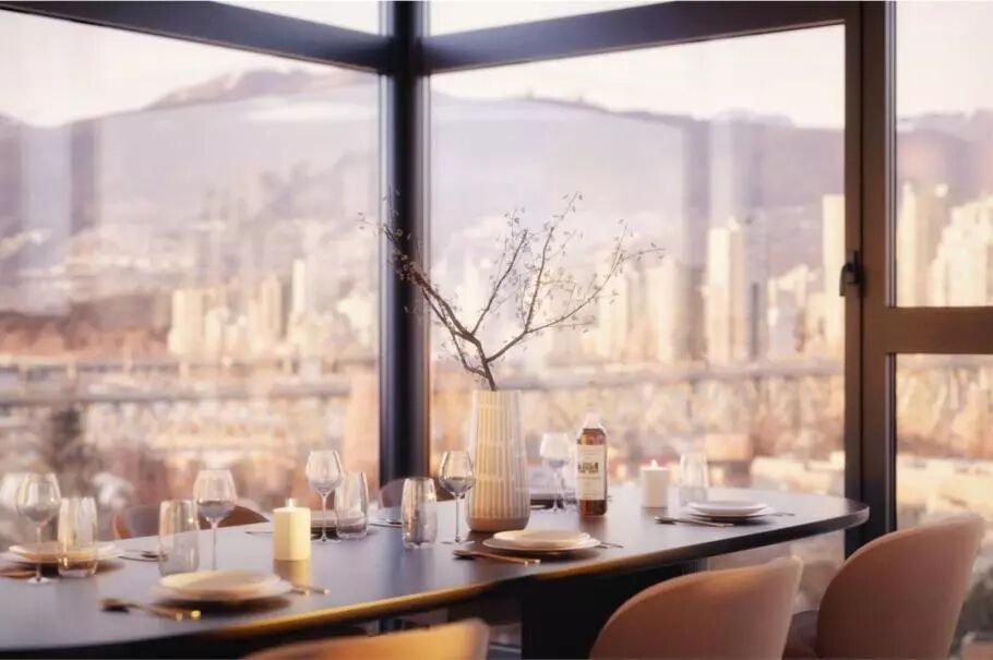 JOIE项目将维护历史建筑经典外观的同时,在室内设计上则采用了现代简洁、高端大气的设计风格。开放式的布局,最大限度地保障室内充足的自然光线和空气流通。室内配有中央空调,可保持四季舒适。环绕的落地窗可从不同角度欣赏温哥华市中心的城市景观以及北岸山水,更是为朋友聚会增添了浪漫意境。
