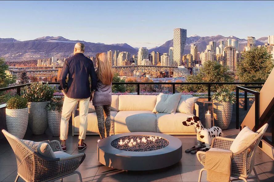 楼顶露台可欣赏到福溪、温哥华市中心和北岸全景,即可于宁静社区享受休闲生活,又可同时感受城市的活力。