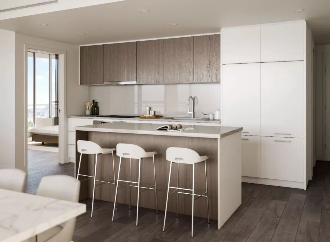 室内层高为8.8尺,配有中央空调,同时有智能恒温控制仪为住户提供适宜温度和便捷控制。深浅两种色调可供选择。厨房选用了高级厨房电器Blomberg 、Fulgar Milano 和 Faber。