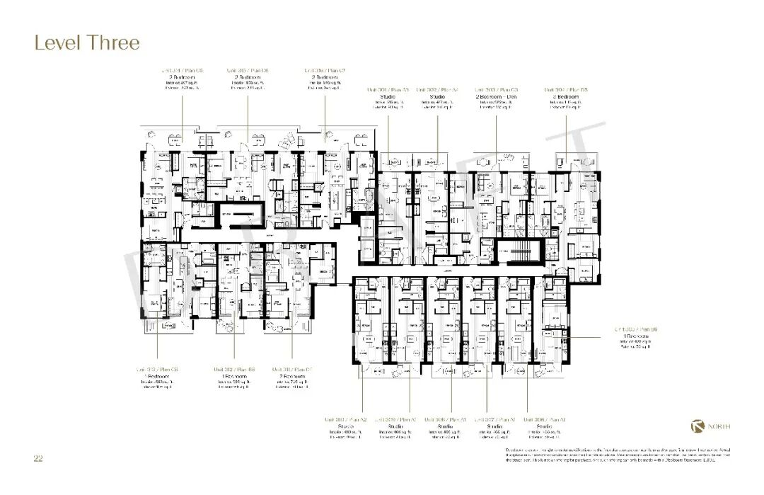 Studio:7套,室内面积466-515平方尺