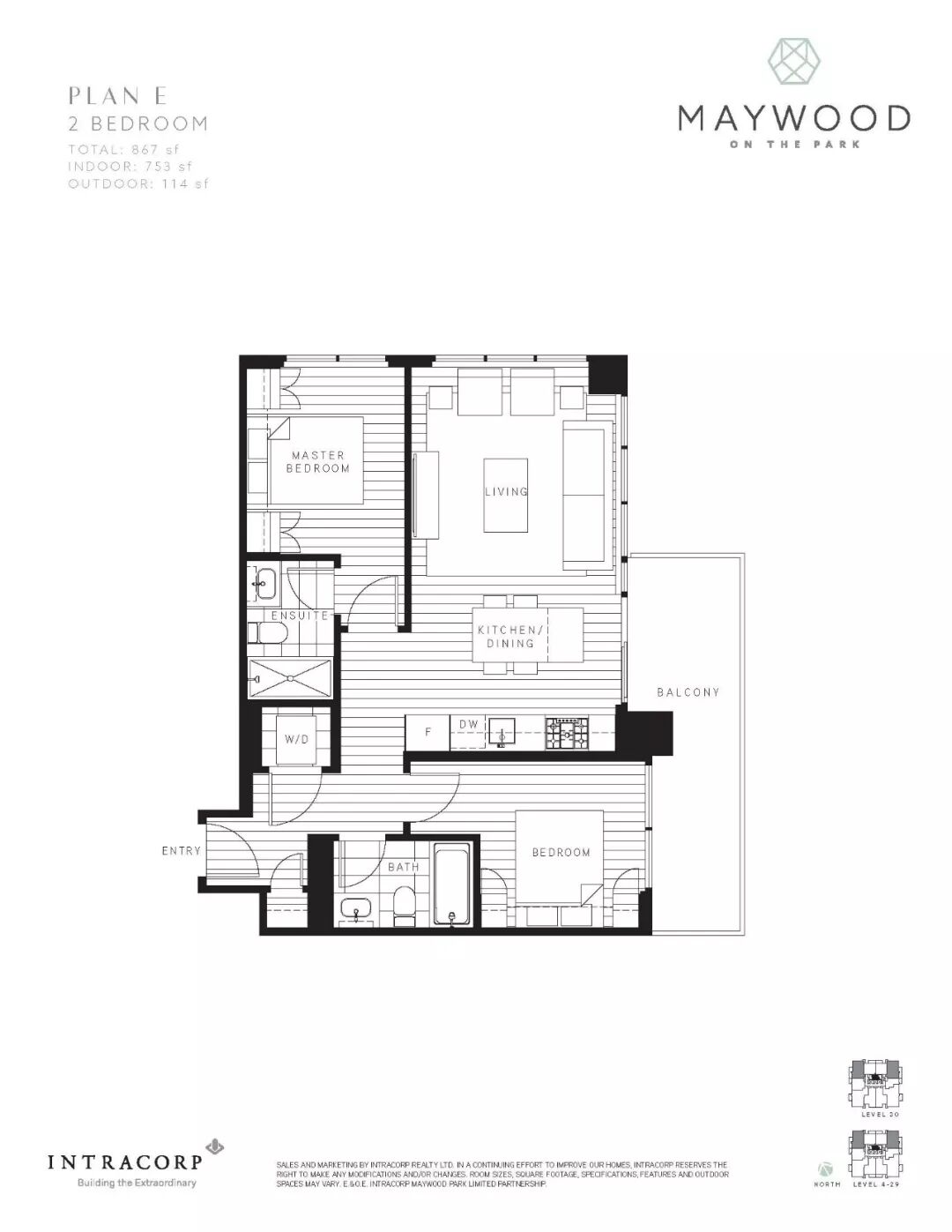 拥有40年本地建造经验的老牌白人建商Intracorp近期就在铁道镇推出了实惠的纯住宅公寓大楼Maywood On the Park。其主打的2室2卫E户型,布局合理,没有一丝浪费。两个卧室的朝向保证全年光照充足,而且室内安装空调,无需担忧夏日气温炎热。