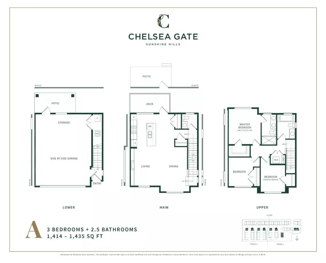 Chelsea Gate项目提供60套3或4卧室的联排别墅,面积范围从1414-2020平方英尺不等。小区内景观经过精心设计,入口处潺潺流水,小区整体氛围温馨而优雅。