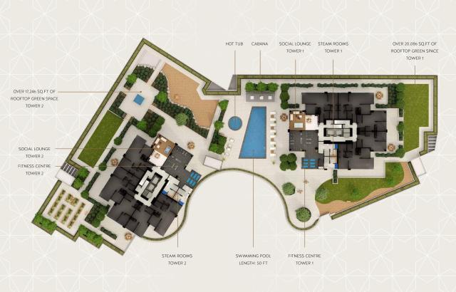 设计大气的车辆门道和大堂将会带给您不一般的尊贵感受。Étoile配有可供业主招待贵宾的会客室。 屋顶泳池、健身中心、绿化花园将满足业主各种日常休闲需求。 同时,Étoile将建有地下1层,地上3层的4层停车场,提供共459个车位,其中44个车位带有充电桩。