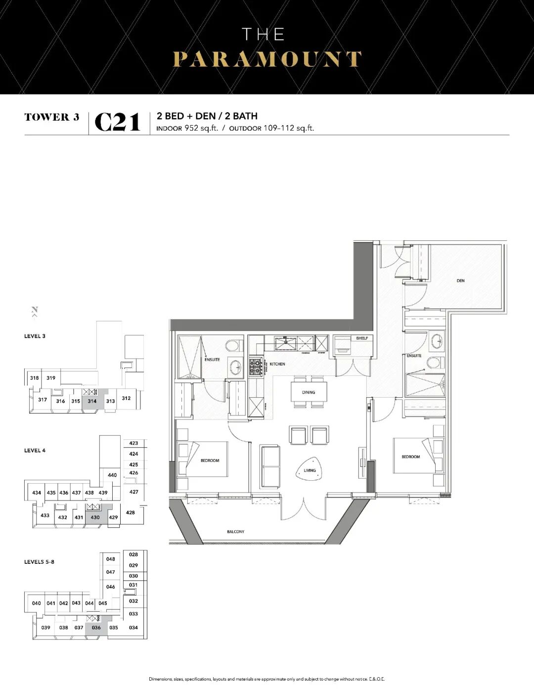 今天优利专栏【户型赏析】为您带来的是位于列治文市中心Richmond Centre对面的The Paramount项目Tower 3的两房+Den户型。